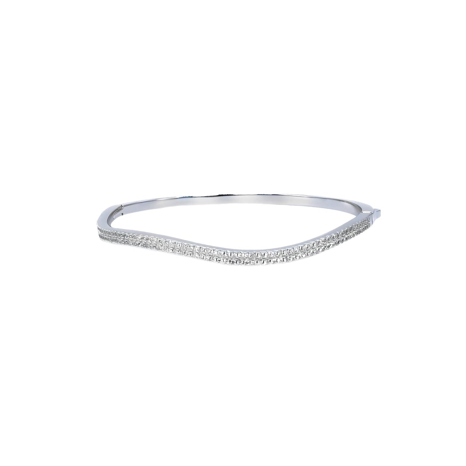 Aro doble linea de zirconias abstracto con broche de caja