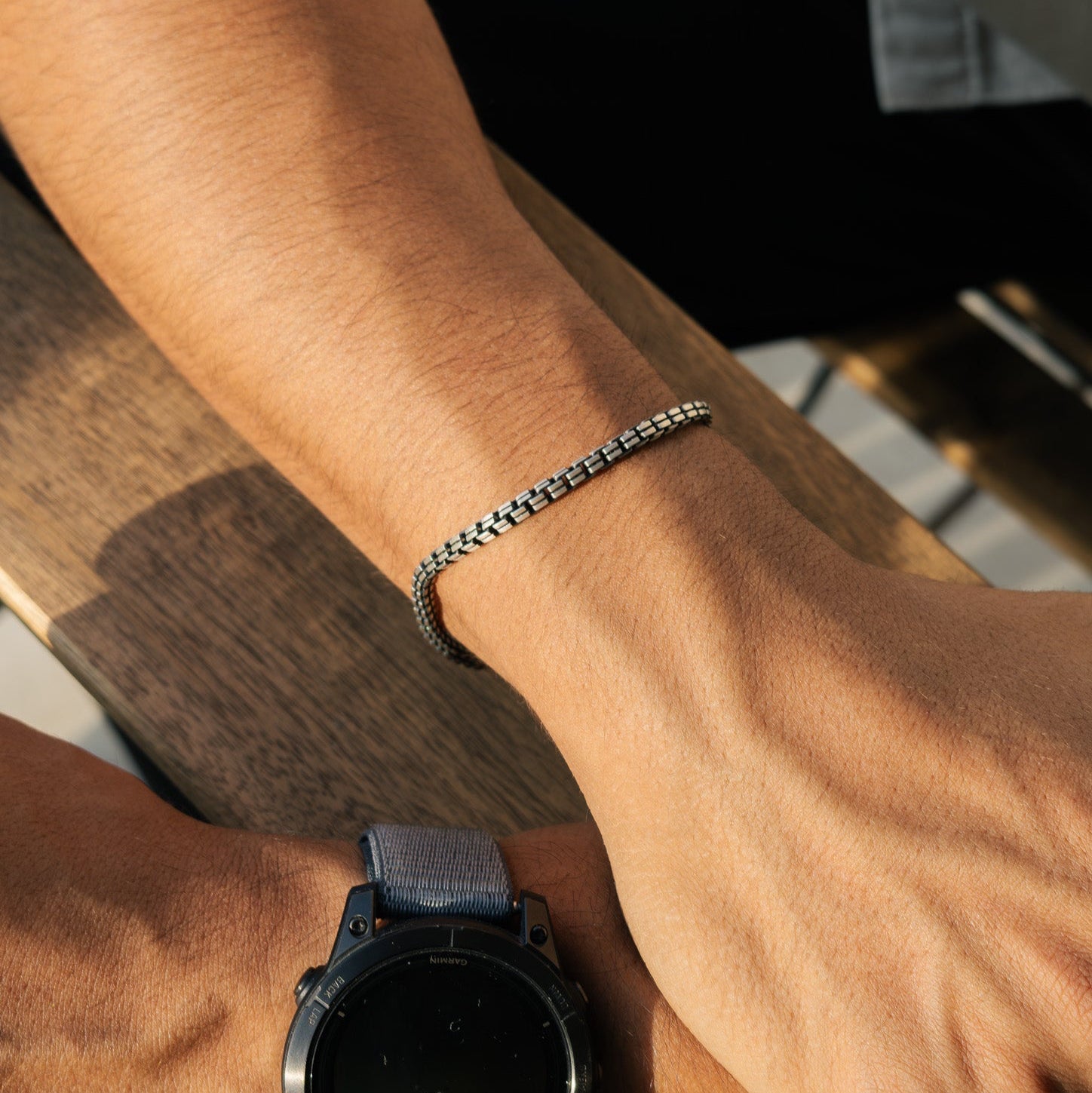 Pulsera cubos con lineas, Estilo oxidado con broche de candado