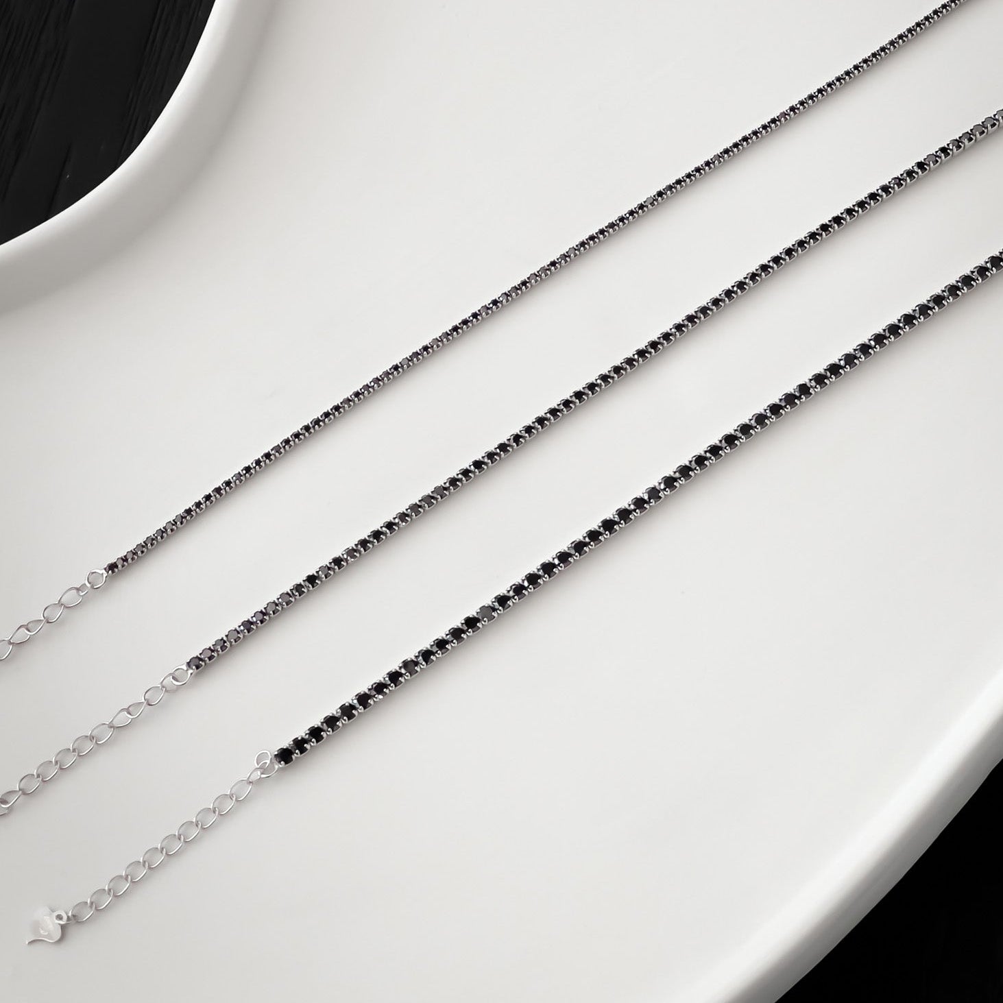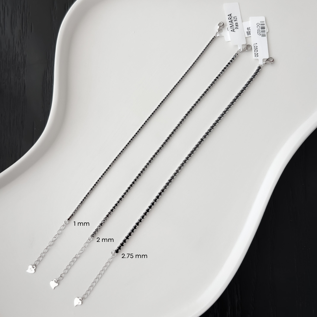 Pulsera tennis con zirconias negras 2.75 mm con broche de extension