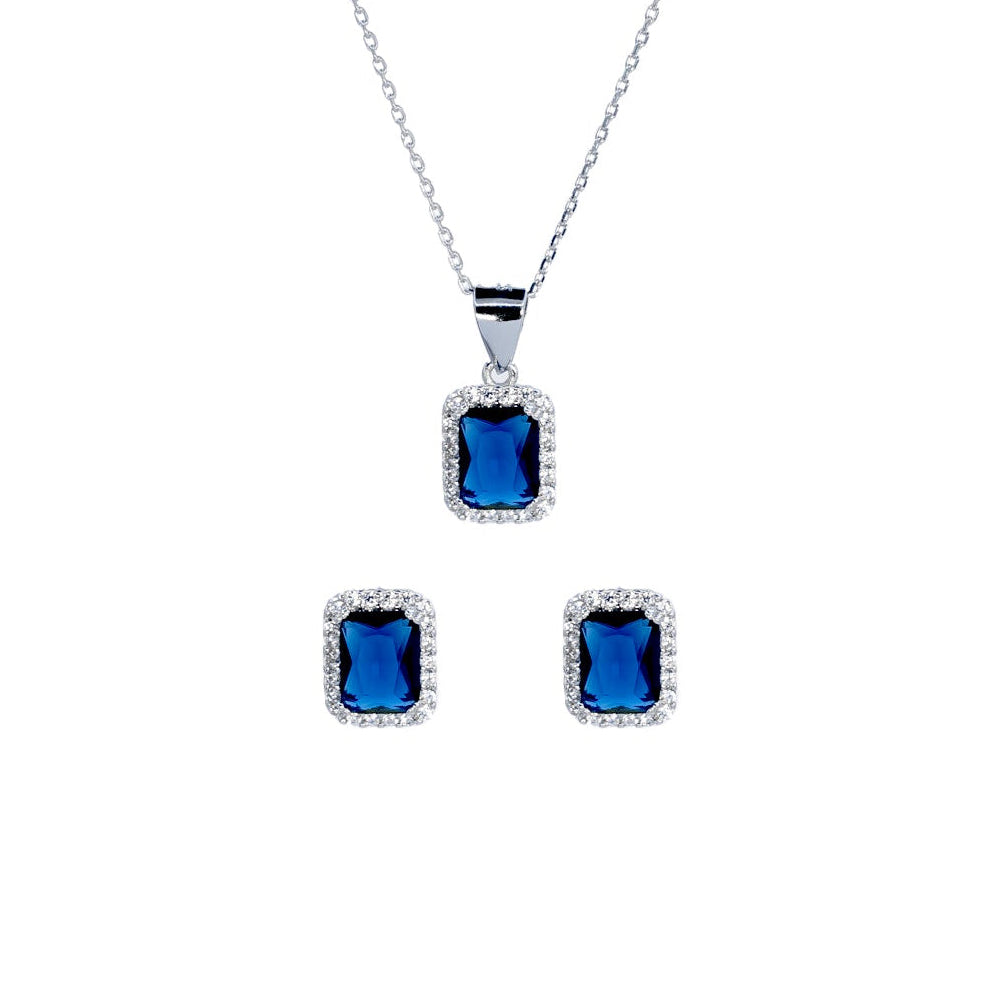 Set rectángulo azul (incluye collar con cadena de extension y broqueles con broche de mariposa)
