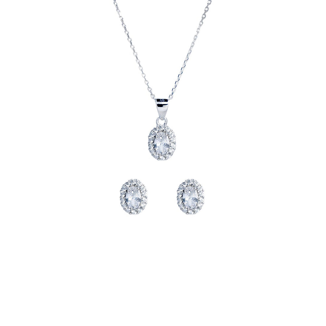 Set oval blanco (incluye collar con cadena de extension y broqueles con broche de mariposa)