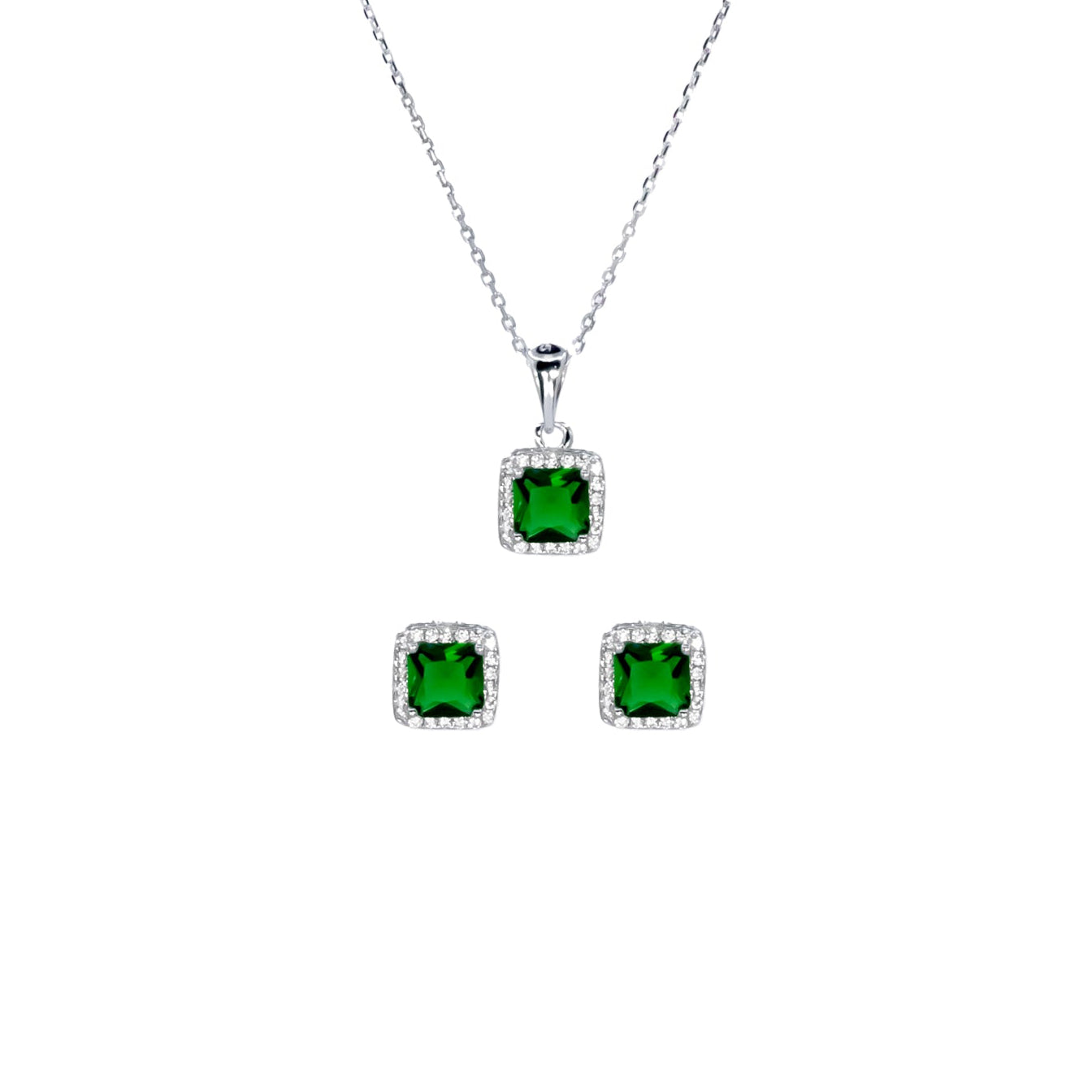 Set cuadro verde (incluye collar con cadena de extension y broqueles con broche de mariposa)